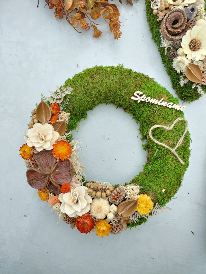 Priemer 30cm, zdobený sušeným materiálom. Tovar slúži iba ako dekorácia